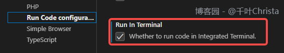在设置中找到“扩展”>“Run Code Configuration”,勾选“Run in Terminal”