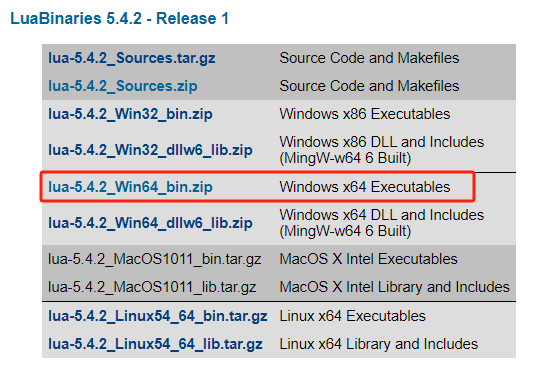 在官网找到 LuaBinaries 的下载链接:Lua Binaries (sourceforge.net),直接下载最新版本