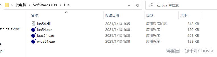 这里我使用的路径是 D:\Lua (lua54.exe 所在的文件夹)